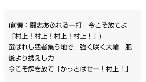 どうしても 村上くんの応援歌 歌詞 覚えられない😓😓😓😓😓 バレンティンみたいに アーチを描け!🎵 とか てっぱちくんみたいに スタンド越えて打球は🎵🎵 とか 簡単なのに してほしかった 👽👽👽👽👽👽👽👽👽 ちゃんと 覚えねば。